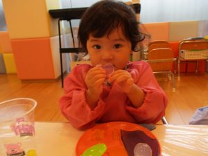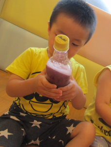 子どもたちに『何味のジュースにする?』と聞くと、それぞれ『ぶどう!』『レモン!』『オレンジ!』など張り切って答えていました![]()