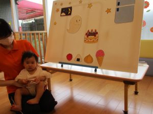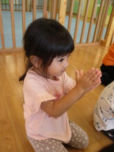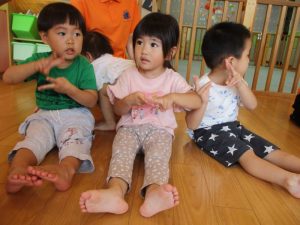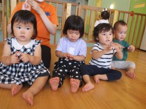 早速、手あそびに合わせて拍手の練習から![]()