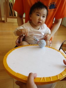 鈴と太鼓のバチでは、太鼓のバチを選び『おおきなたいこ』を披露してくれました![]()