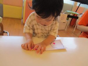 保育園では敬老の日に向けて、いつもみんなのことを優しく見守ってくれている、おじいちゃん・おばあちゃんに『ありがとう』の気持ちを伝えようとハガキを作りました![]()