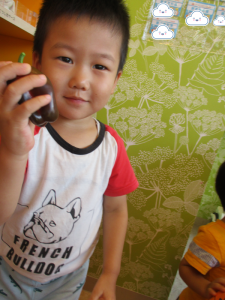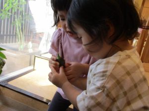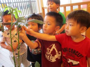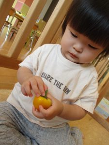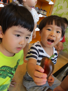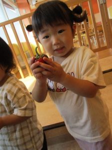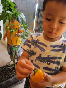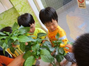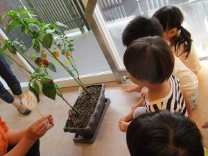 今週に入り、どんどん色が変わっていくパプリカに興味津々だった子どもたち![]()