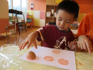 まずは絵本を見たり、指人形で手あそびをしたりして、子どもたちに敬老の日があることやおじいちゃん・おばあちゃんにプレゼントを作ることを伝えました![]()