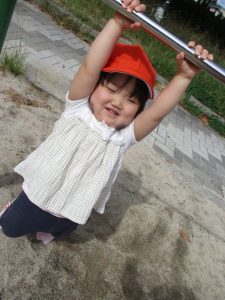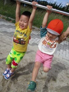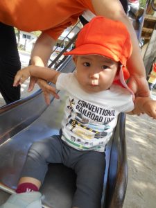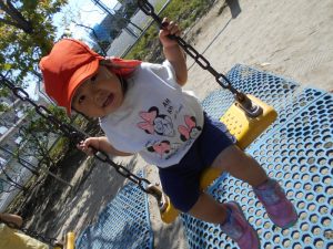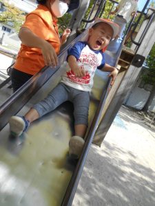 初めて神社公園に行くお友だちはいつもと違うすべり台やブランコに興味津々
