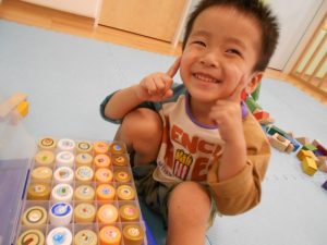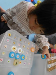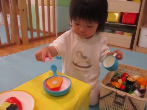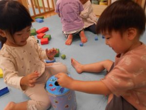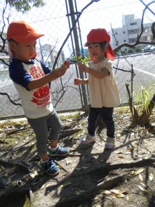朝の会などで「どんぐりころころ」をよく歌っているので、「どんぐりあったよ!」の声を聞くと自然と手がぐるぐる動くお友だちもいました