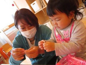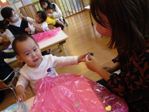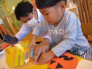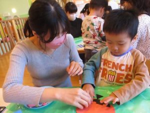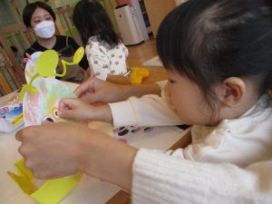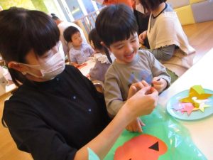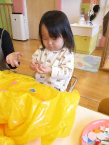 おうちの人に手伝ってもらいながら「これにする!」「ここに貼る!」とこだわりも見せていましたね![]()