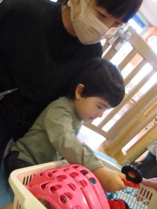 お母さんに教えてもらいながらやってみようとする姿にほっこり![]()