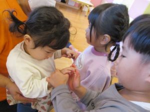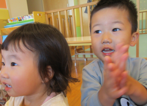 繰り返しのうたなので、子どもたちもいつの間にか口ずさんでいました![]()