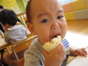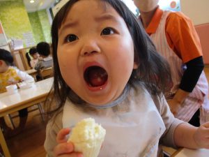 誕生会の日のおやつはコーン蒸しパンでした![]()