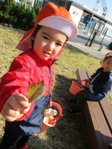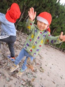 公園では落ち葉を踏んで音や感触を楽しんだり、引き続きどんぐり探しをしたり・・