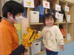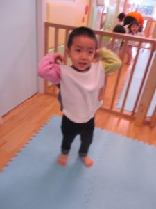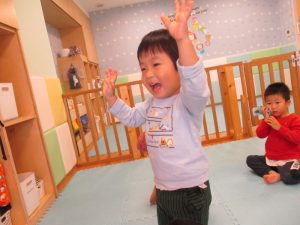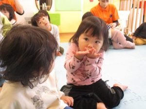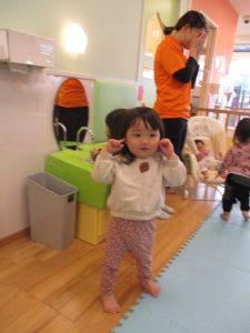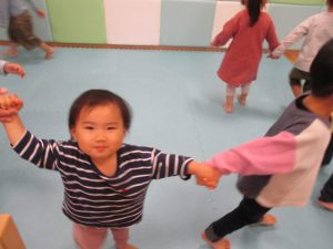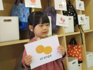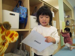 今月はいつもの『HelloSong』に加えて『Head,Shoulders,Knees,And Toes』のうたに合わせて身体を動かしたり『Are you hungry? 』のうたを歌いながらフルーツの名前や色の名前を覚えたりしています![]()