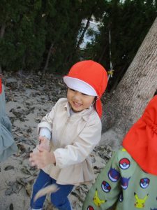 拾った葉っぱや石ころを『ママに見せる!』と大事そうにポケットに入れたり手の中に握りしめたり、外あそびの中でもお家の人へ思いを馳せている様子にほっこりとします![]()