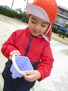 手を使うことに最初は戸惑ってるお友だちもいましたが先生やお友だちの姿を見て、『やってみよう』という気持ちの変化も見られました![]()