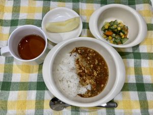 ご飯 チキンカレー ごまサラダ りんご