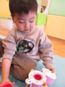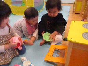 お友だちとも『これ食べる?』『お茶入れて』など微笑ましいやりとりが見られます