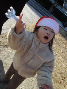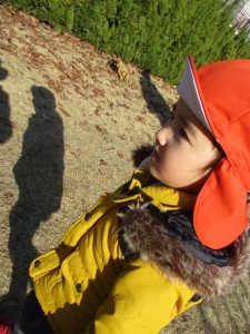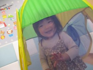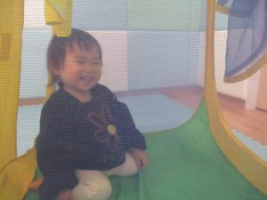 外にいるお友だちや先生と目が合うととても嬉しそうに笑っています