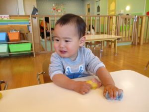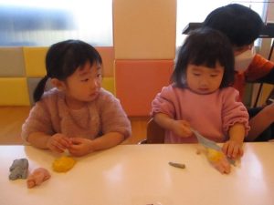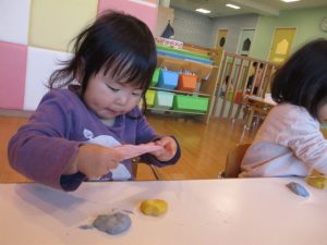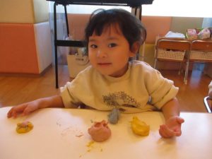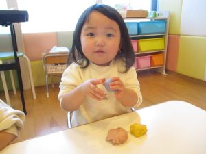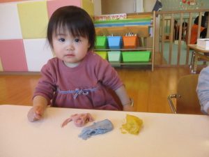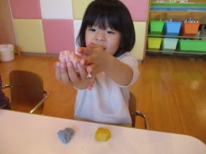 この日は赤・青・黄色の小麦粉粘土を用意しました