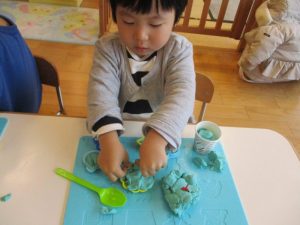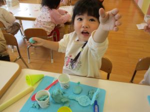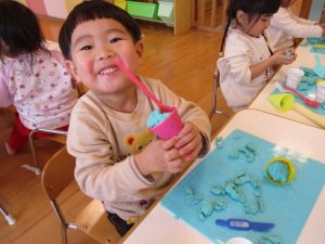 りんご組さんが大好きな粘土あそびです![]()