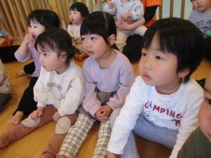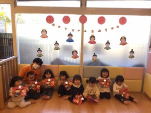 『うれしいひなまつり』を歌いながらパネルシアターを見たり、みんなでゲームをしたりしてみんなの健やかな成長をお祝いしました![]()