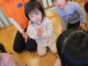 『うれしいひなまつり』は朝の会などで沢山歌ってきたので、子どもたちも手拍子をしながら一緒に歌っていました![]()