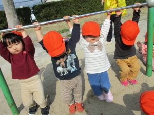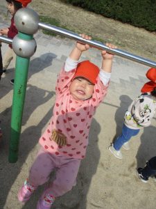 公園に着くと、早速始まった鉄棒での力比べ![]()