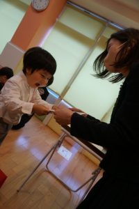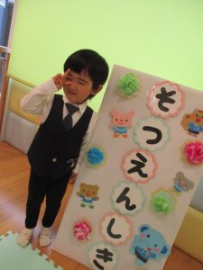 おうちの人と顔を見合わせるとちょっぴり緊張した様子でしたが、最後の言葉まで頑張って発表することができました![]()