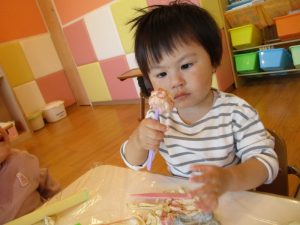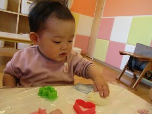 いちご組さんは小麦粉粘土の感触をたっぷりと楽しみ、りんご組さんは作りたいものを形にすることを楽しみ、年齢によって様々な姿が見られました![]()