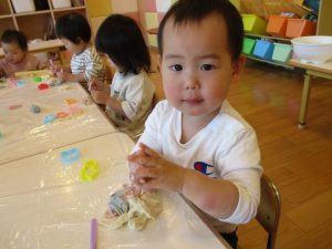 木曜日にはみんなで小麦粉粘土をしました![]()