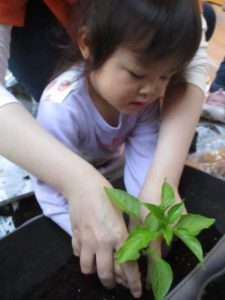 そして金曜日にはりんご組さんがピーマンの苗植えをしました![]()