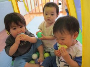 ボールあそびではテントハウスで仲良くおやつタイム!?![]()