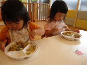 食育タイムの後は、お待ちかねのお給食![]()