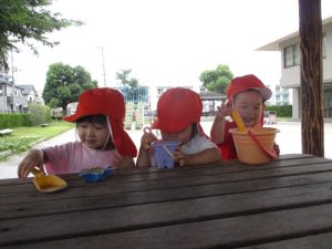 子どもたちは室内や戸外に関係なく、汗ばみながらも日々色々なあそびを楽しんでいます![]()