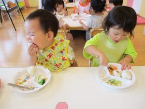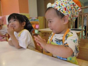 『食べてもいいよ!』と言われると『待ってました!!』というように、子どもたちが集ってきました![]()