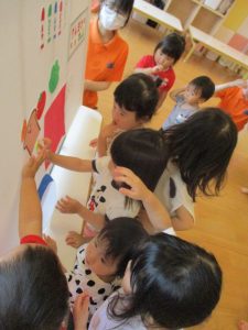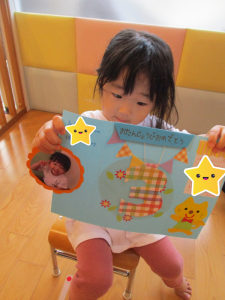 誕生会を楽しみにしていたお友だちも、みんなの視線にちょっぴり緊張しているようでしたが、『好きな食べ物』『好きな絵本』『好きな動物』などの質問には迷うことなく、答えていました![]()