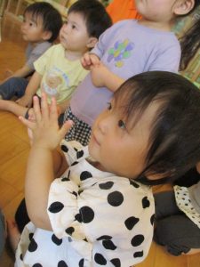 繰り返しのリズムがあるうたに子どもたちもノリノリ![]()