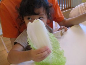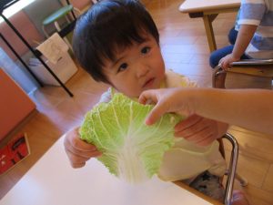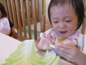 白菜の葉っぱはキャベツより柔らかいね~![]()