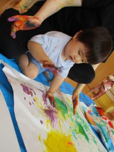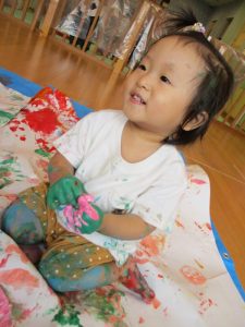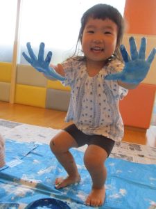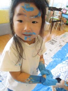 絵の具を触ることに何の迷いもない様子でした![]()