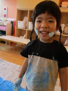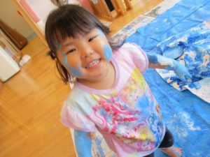 いつの間にか顔にも絵の具がついちゃった![]()