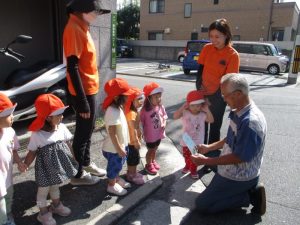 18日は敬老の日ということで先日ハガキを持って帰りましたが、公園に行く時にいつも声をかけてくださる自転車屋のおじちゃんにも感謝の気持ちを伝えに行きました