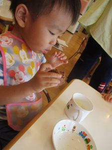 『ハッピーバースデー』のうたを歌う前に、誕生日だからということでみんなでケーキを作りました
