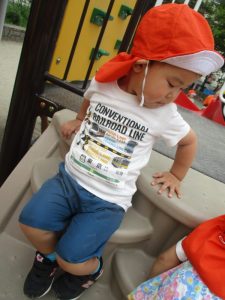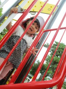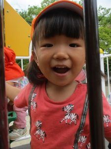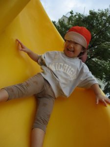 高い方のすべり台にも慣れ、スピードにのって楽しんでいました