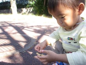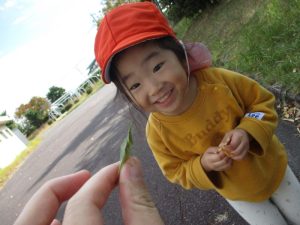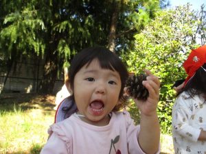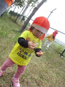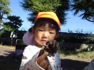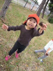 まつぼっくりを手に『まつぼっくりがあったとさ〜♪』と口ずさむ様子も見られました![]()