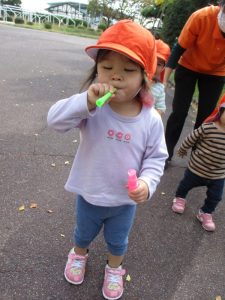 総合グランドではシャボン玉をしたり、のびのびと走り回ったり気持ち良さそうに遊んでいます![]()