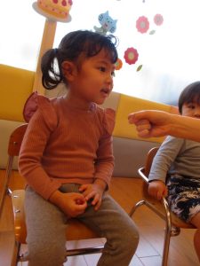 『お名前は?』『何歳になりますか?』『好きなあそびは何ですか?』『好きな食べ物は何ですか?』など、ひとつひとつの質問に言葉や身振り手振りで一生懸命答えていました![]()