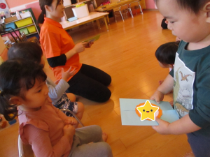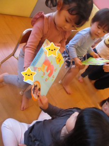 絵本でよく見ているお話ですが、形が変わると新鮮だったようで子どもたちも夢中![]()