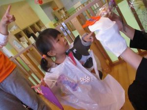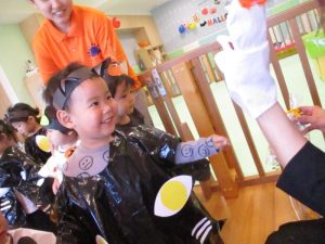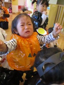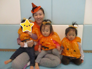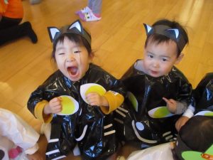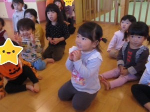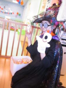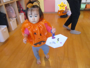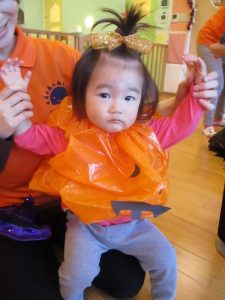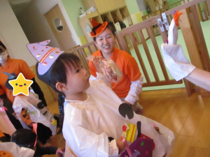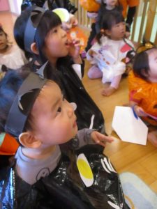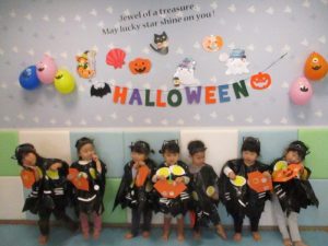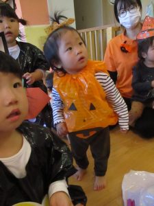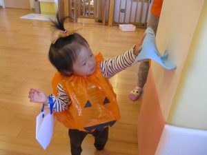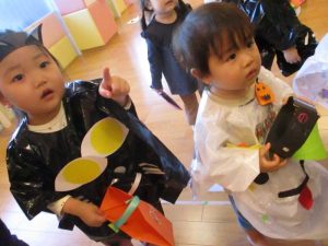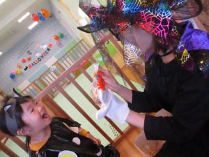 一人ひとりハロウィンでの合言葉『トリックオアトリート!!』を言い、おかしをもらうことができました![]()