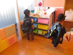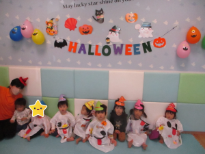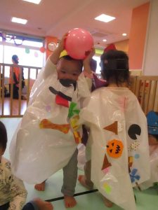 ハロウィン会が近づくにつれお部屋の中に増えていくオバケにドキドキワクワクしていた子どもたち![]()