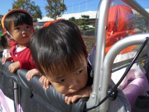 行き帰りは通り過ぎていく沢山の車に夢中で、指を差したり目で追いかけたり忙しそうです![]()