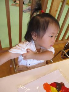 いろんな色が重なり合う様子に『きれいな色だね~』と話すお友だちもいました![]()