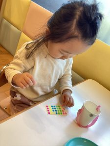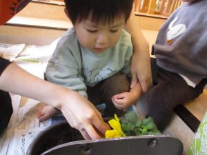 りんご組さんはピーマンに引き続き、ブロッコリーのプレート作り