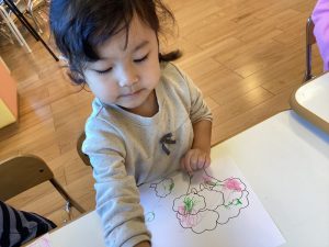 小房をひとつずつ丁寧に塗るお友だち、好きな色でカラフルに塗るお友だち・・と個性が出ていました